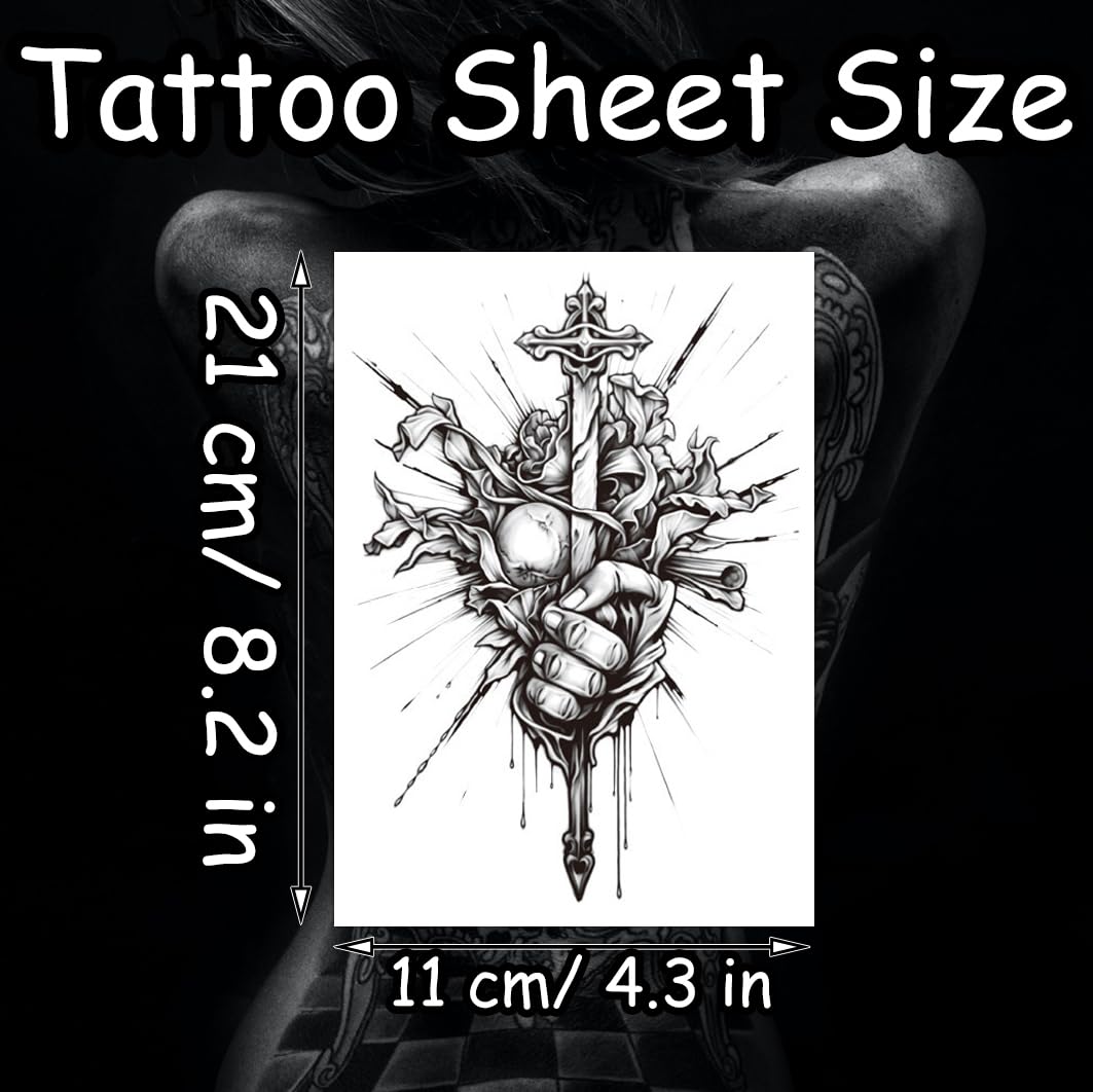 S.A.V.I 1 Pc Temporary Tattoo for Men – Bold Black Sword & Hand Design, 21x11 cm | Waterproof, Long-Lasting, Non-Toxic Tattoo Sticker for Arm, Shoulder | Safe Skin Art for Party, Fashion Look
