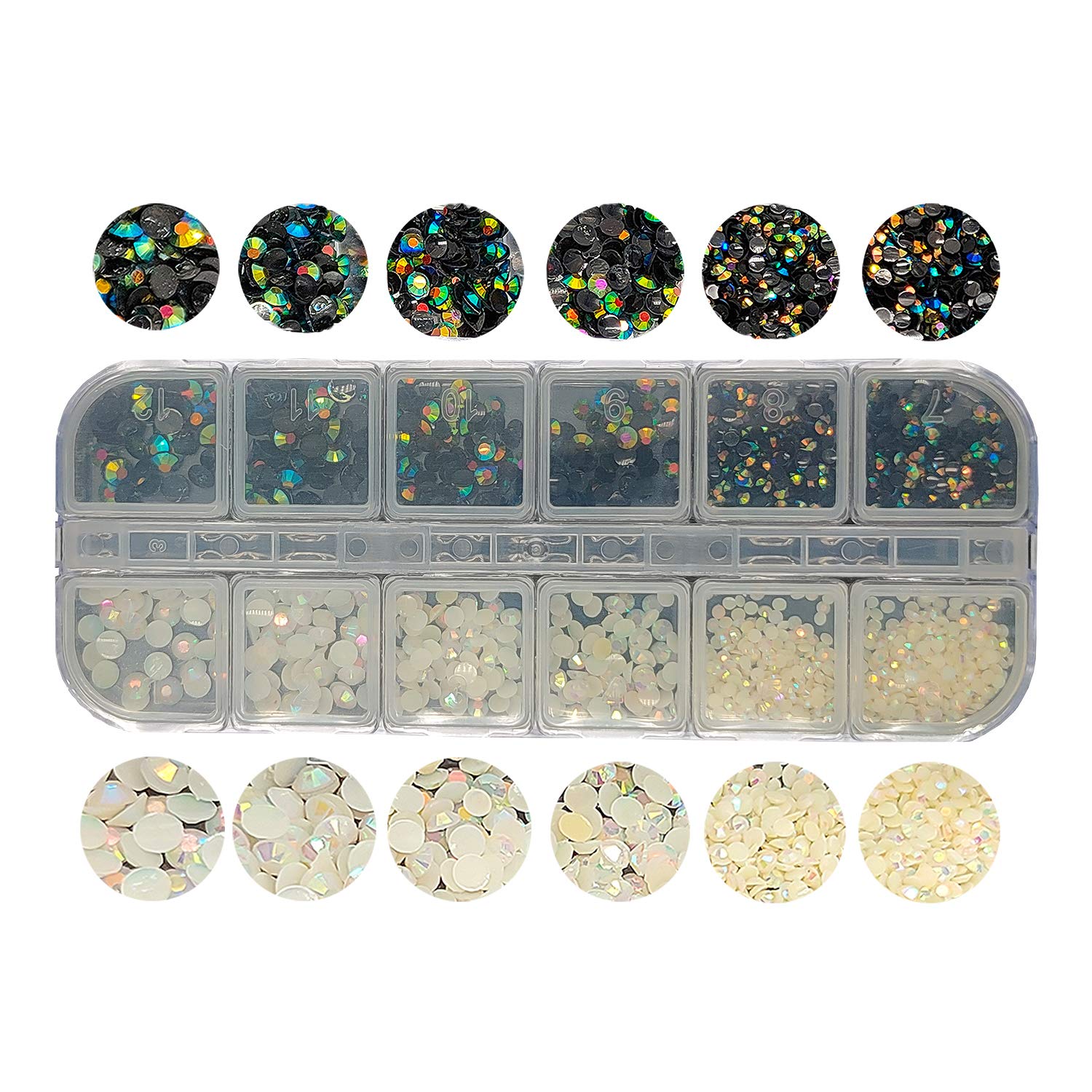 - 1Palette for 12 Styles DIY Nail Art 3 Sizes B&W Color Drill Jelly Stones For Manicure