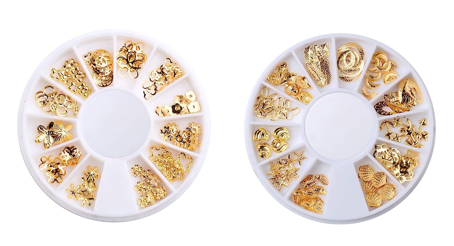 S.A.V.I (2 PCS.) 3D Nail Art DIY Manicure Decoration Disc Wheel Alloy Golden Silver Color Leaf Shells Butterflies Anchor Moon Stars Flowers Shape Metal Crystal Glitter Rhinestones - 24 Styles (Set-1)
