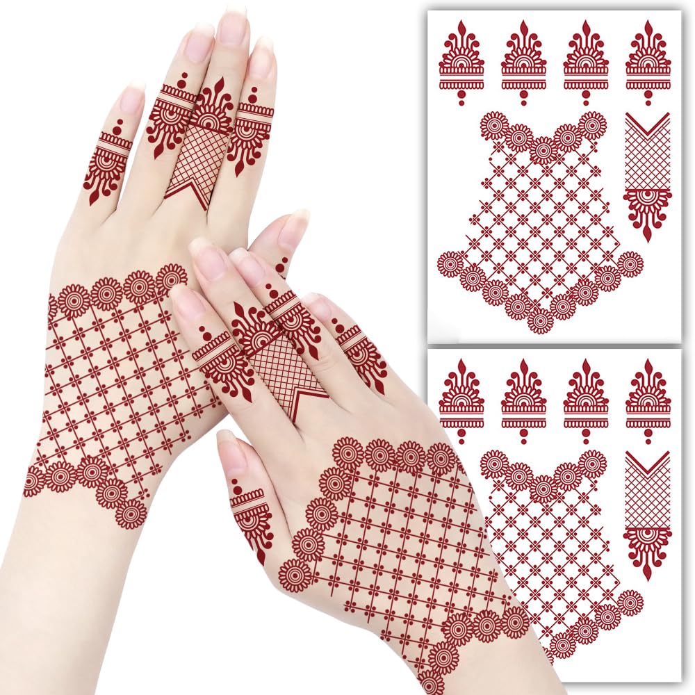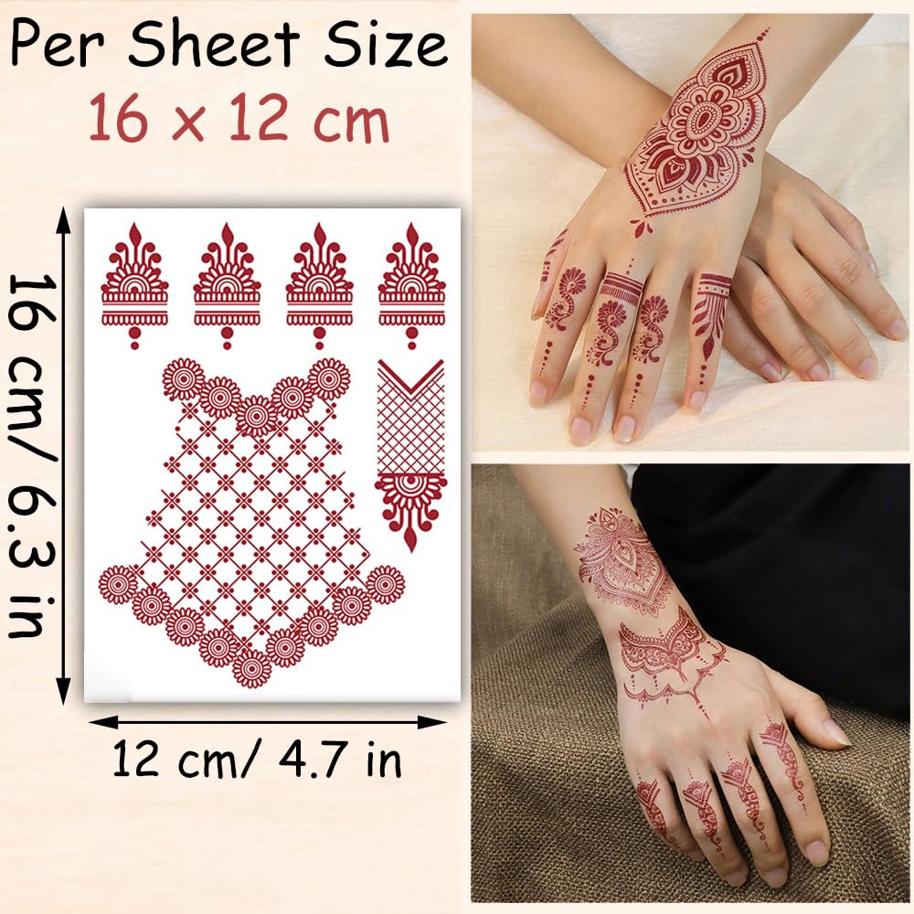 Designed for women and girls who love adorning their hands with floral and net-style mehndi patterns, these non-toxic and skin-safe body stickers are ideal for all ages. Each pack includes 2 sheets (16x12cm) of beautifully crafted red temporary tattoos that last up to 4-7 days with proper care.