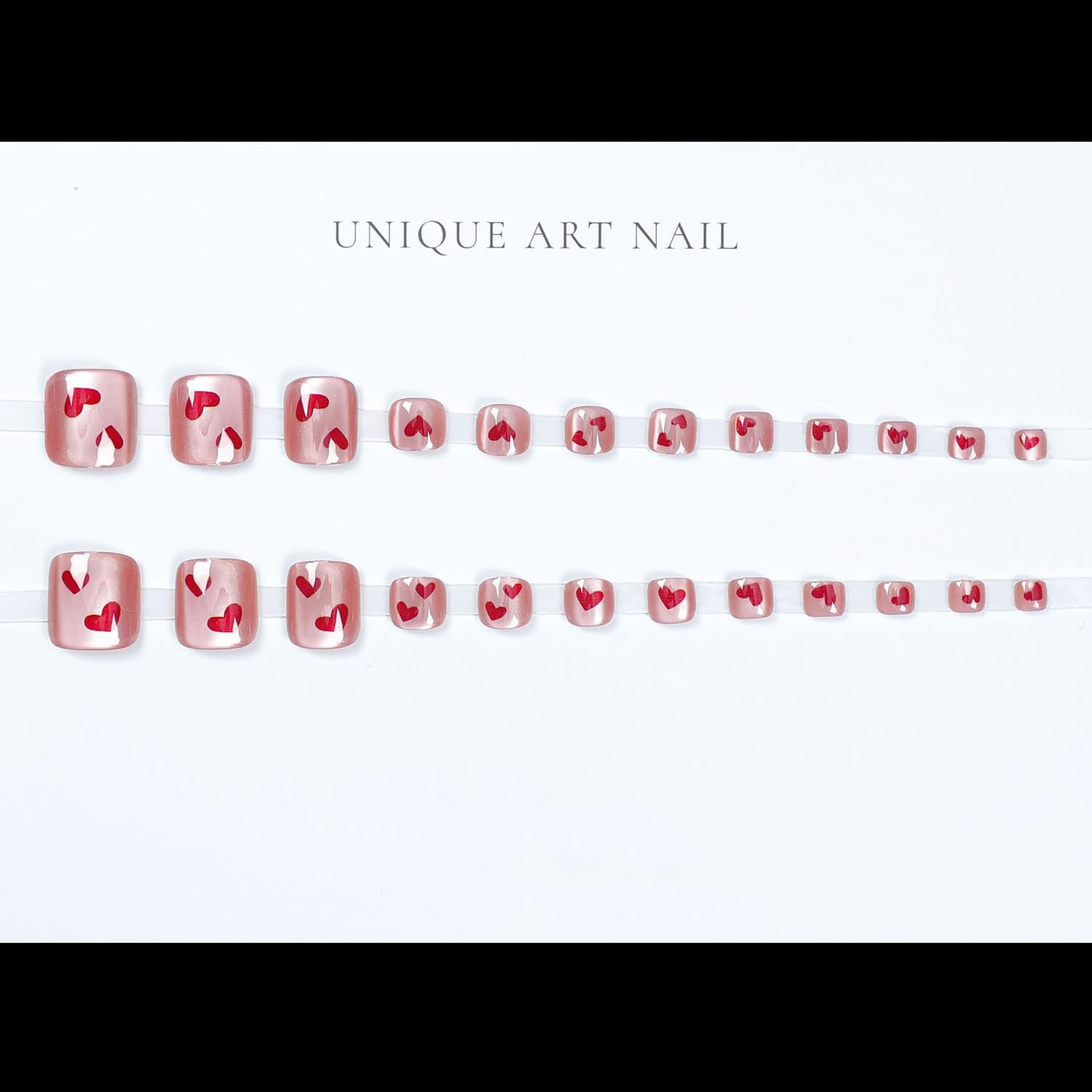 Upgrade your nail game with S.A.V.I 24 Pcs Fake Toe Nails in a stunning Baby Pink Cat’s Eye finish with adorable Red Heart Print. Designed for women and girls who love stylish nail art, these press on nails give you a flawless pedicure look in just minutes. No more expensive salon visits – enjoy instant glamour anytime, anywhere.