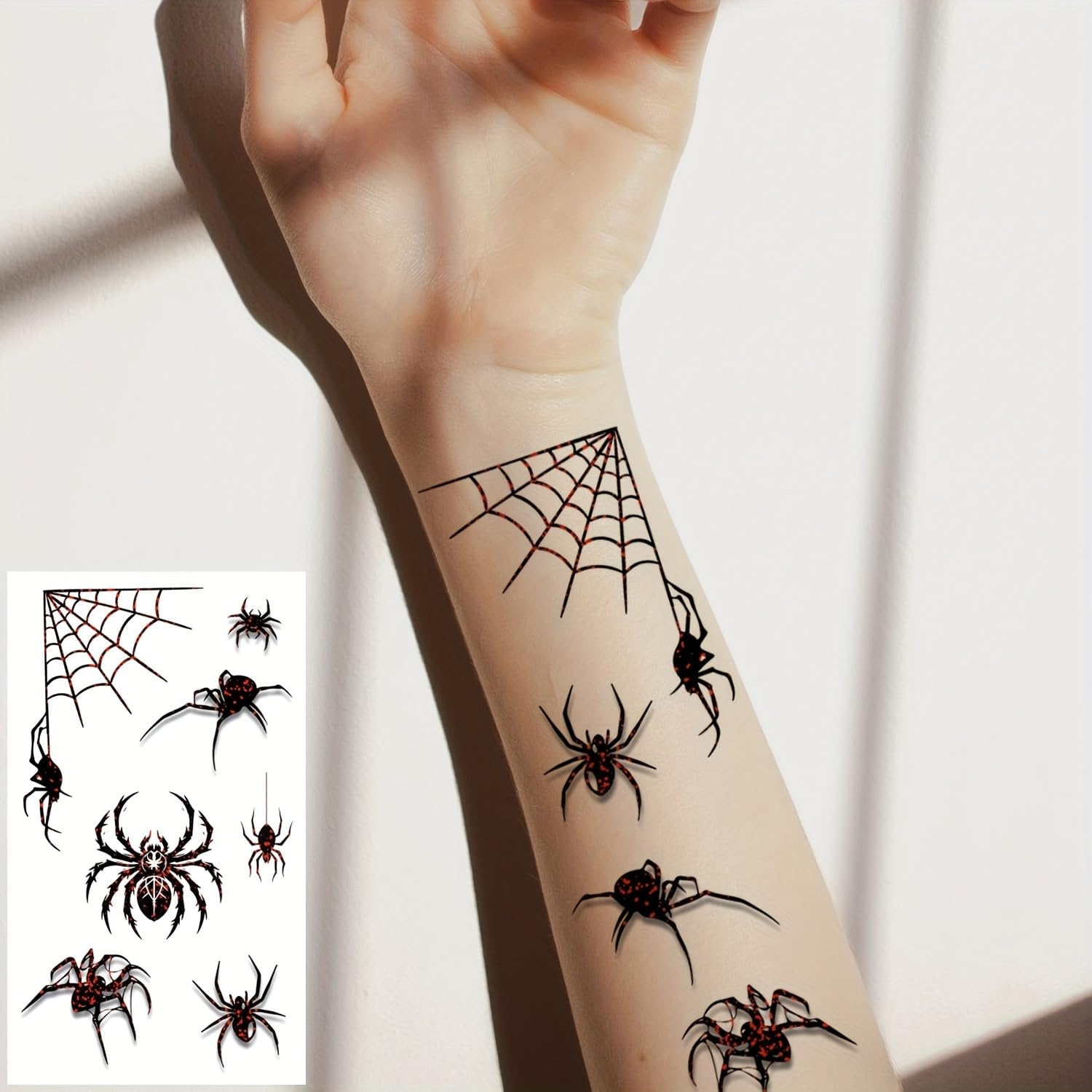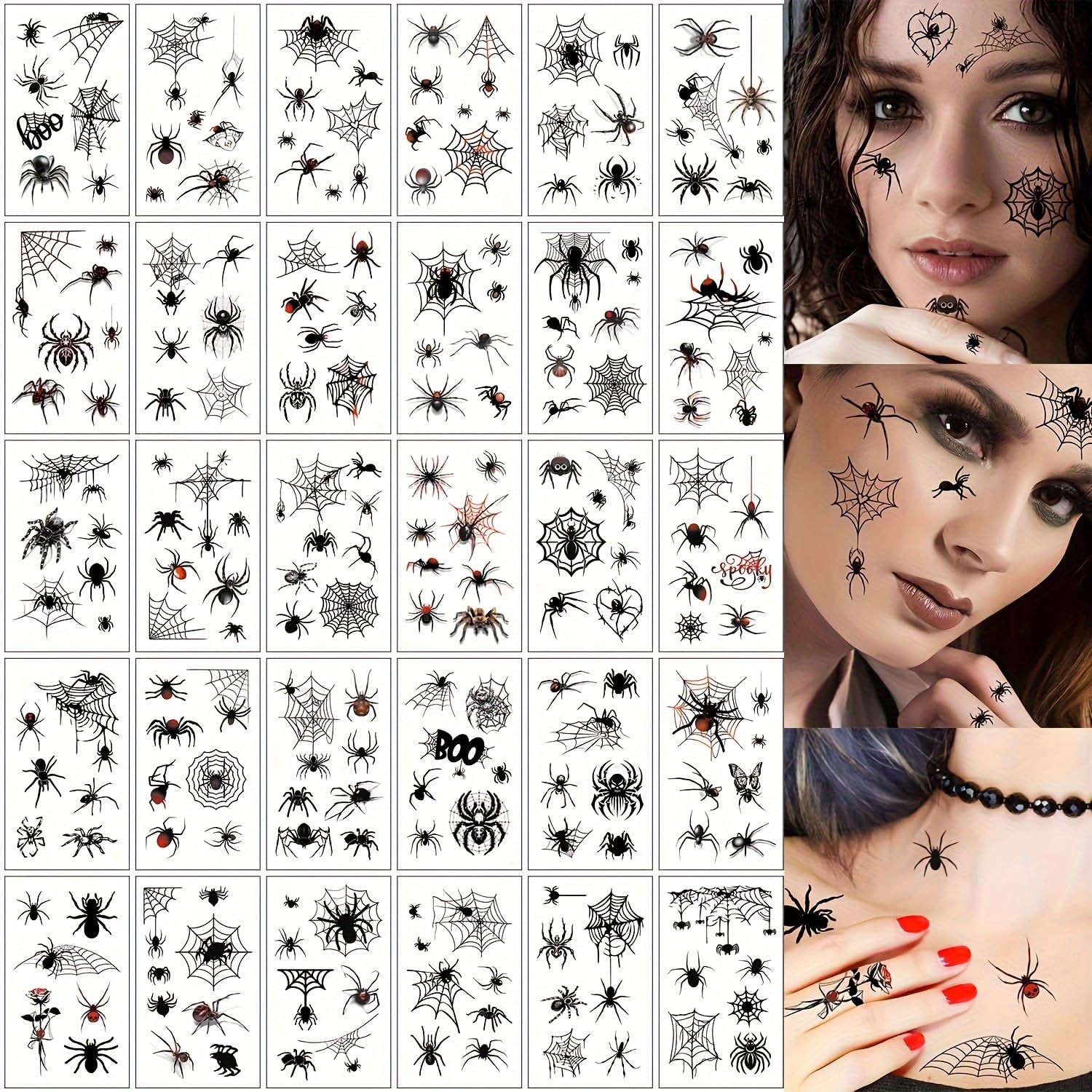 S.A.V.I 30 Pcs Spider Web Temporary Tattoos for Kids & Adults – Safe Non-Toxic Black & Red Halloween Designs, Waterproof Body Art Stickers – 9.7x5.7 cm Sheets, Long Lasting for Face, Arms, Hands (15)