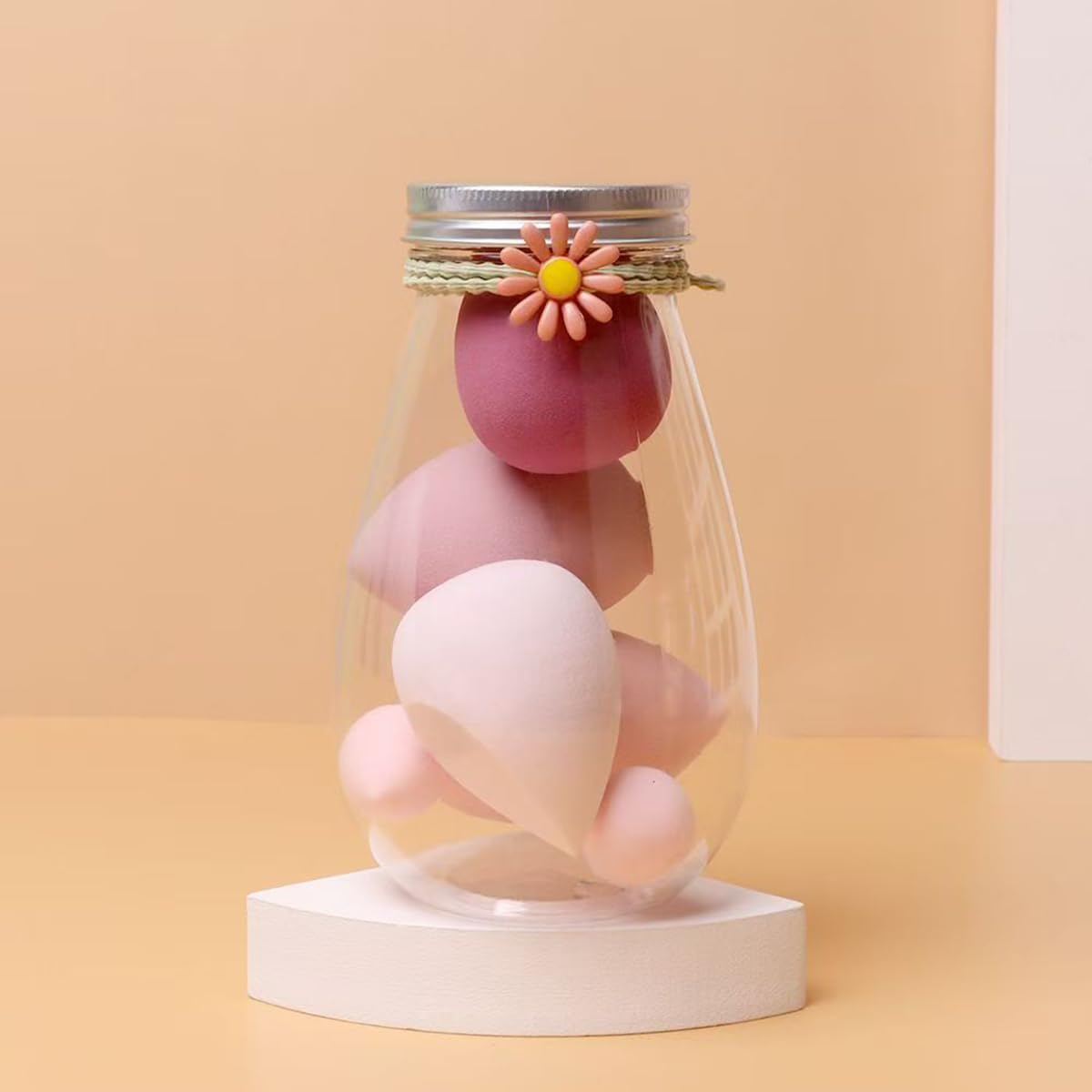 Whether blending base makeup or setting powder, this 6-piece combo (4 large + 2 small) gives you control and precision. Each set includes a reusable storage jar — hygienic, travel-friendly, and eco-conscious. Easy to clean, durable, and gentle on all skin types, these sponges are designed to last through multiple washes.