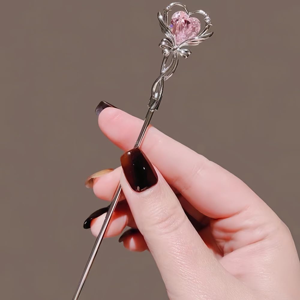 Crafted from premium quality silver-tone metal, this 18.2 cm long hair stick pin features a beautiful pink heart rhinestone and an elegant butterfly bow design. Whether you're styling a bridal bun, festive look, or everyday traditional hairstyle, this juda stick ensures a secure hold with a sophisticated finish.